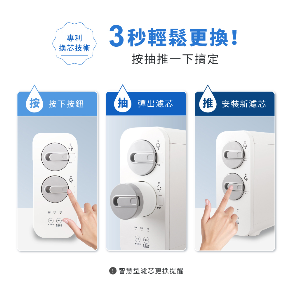 ◆ 按壓式一體化濾芯,更換濾芯方便,消費者可自行更換。